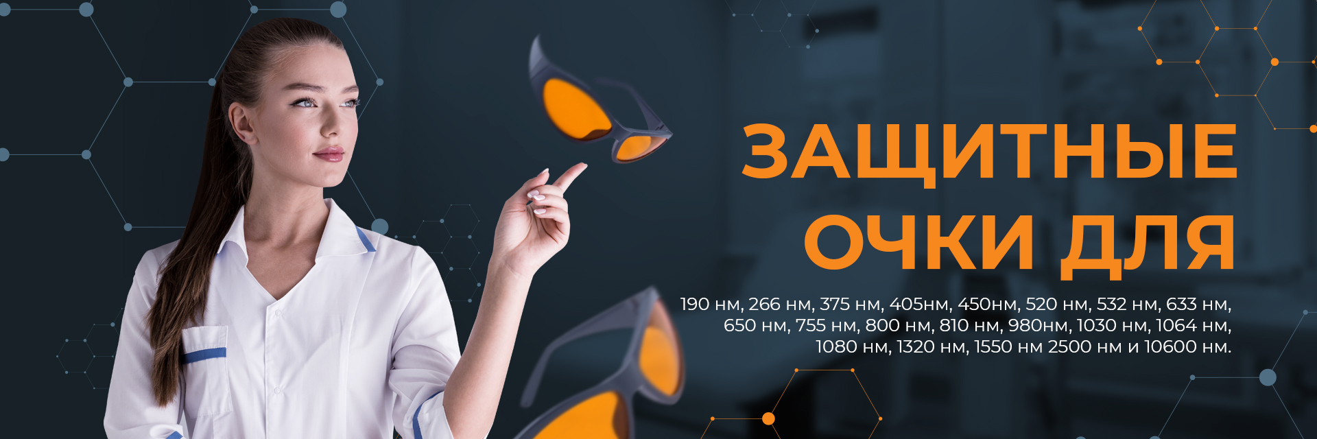 Основную опасность для глаз человека оказывают лазерные лучи в диапазоне 400-1400 нанометров. При проведении исследований и работе с приборами, излучающими лазерные лучи, в промышленности, медицине и других отраслях нужно обязательно надевать очки от лазерного излучения для защиты органов зрения.